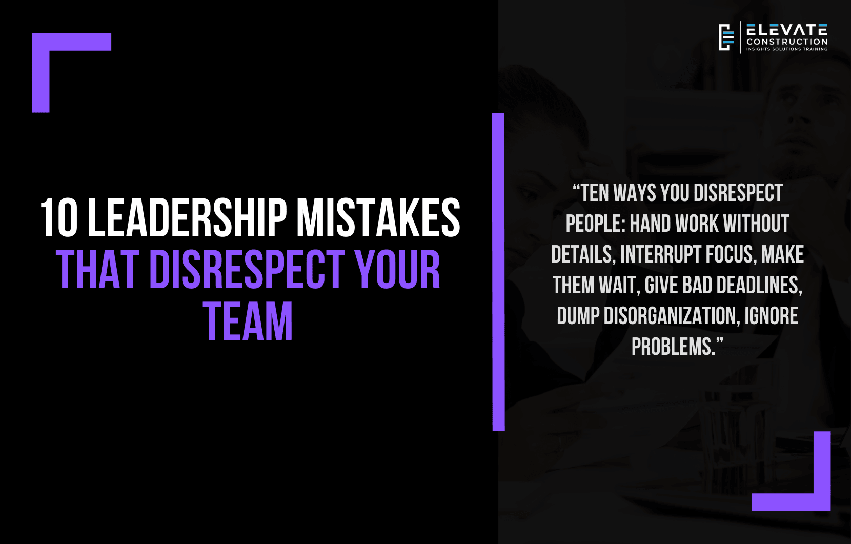 Not everything I see on social media helps me, but this one really, really helped me. I don’t know if it is going to help you, but I sure hope it does. As we say at Elevate, ten ways you disrespect people: hand work without details, interrupt focus, make them wait, give bad deadlines, dump disorganization, ignore problems.