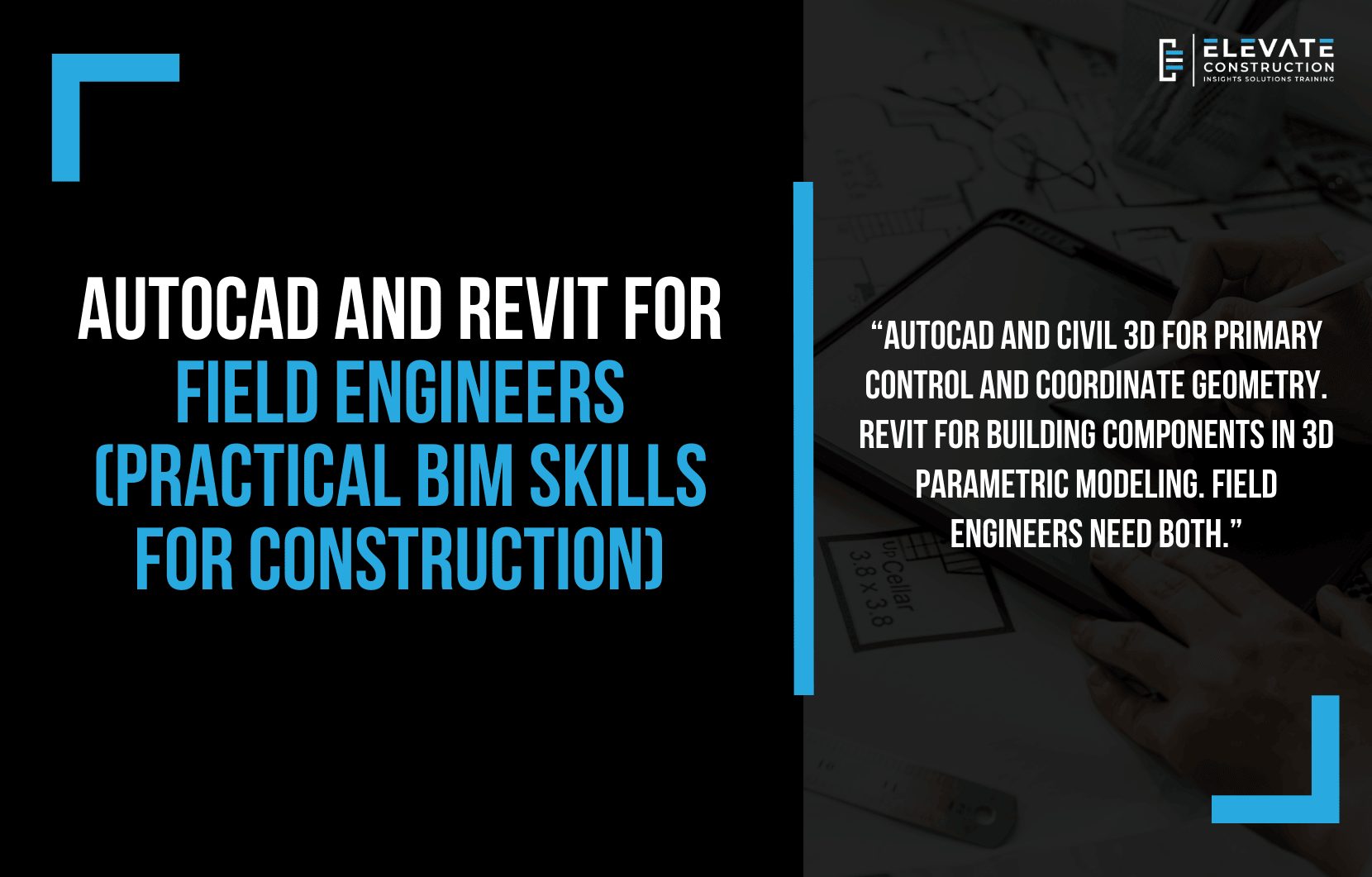 As we say at Elevate, AutoCAD and Civil 3D for primary control and coordinate geometry. Revit for building components in 3D parametric modeling. Field engineers need both to program their brains to be builders.