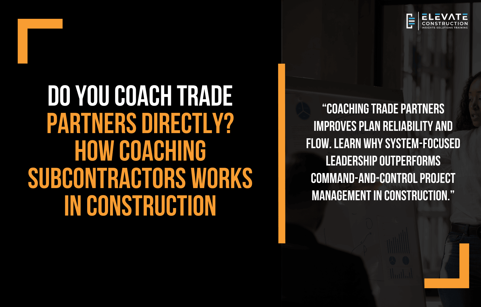 Here’s the mistake most general contractors make with trade partner management: they try to control subcontractors instead of coaching them. You show up to foreman meetings and yell about missed dates. You threaten backcharges when work falls behind. You publicly correct trade partners in coordination meetings. You re-explain the CPM schedule for the third time this week like the problem is they don’t understand the plan. And you wonder why schedule reliability keeps dropping, why trade coordination gets worse, why crews seem disengaged, why the same problems keep recurring no matter how much pressure you apply. The harder you push, the worse performance gets. That’s not a trade partner problem. That’s a leadership problem.