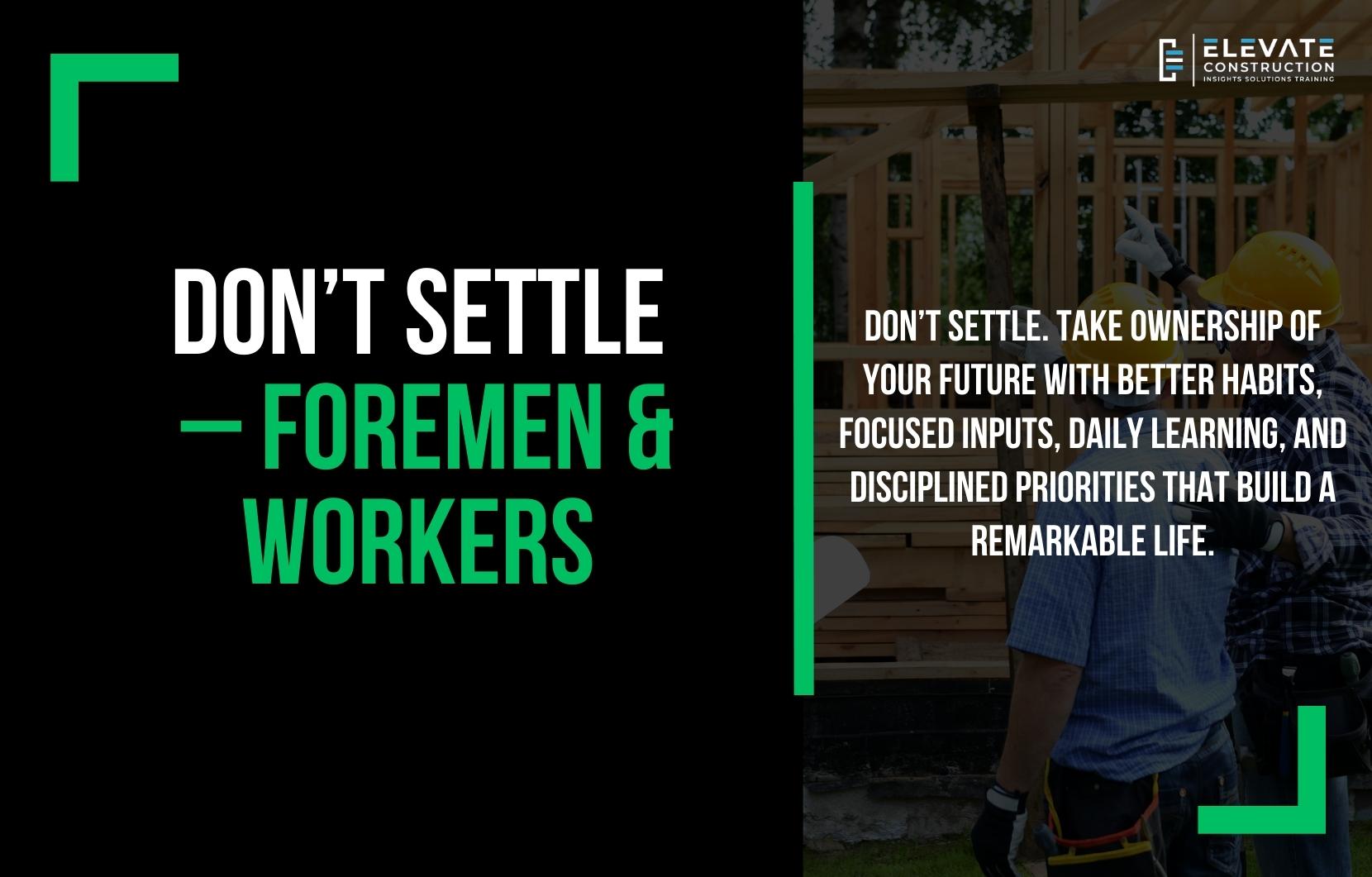 Don’t Settle: How Workers and Foremen Build a Remarkable Life Through Ownership, Habits, and Focus