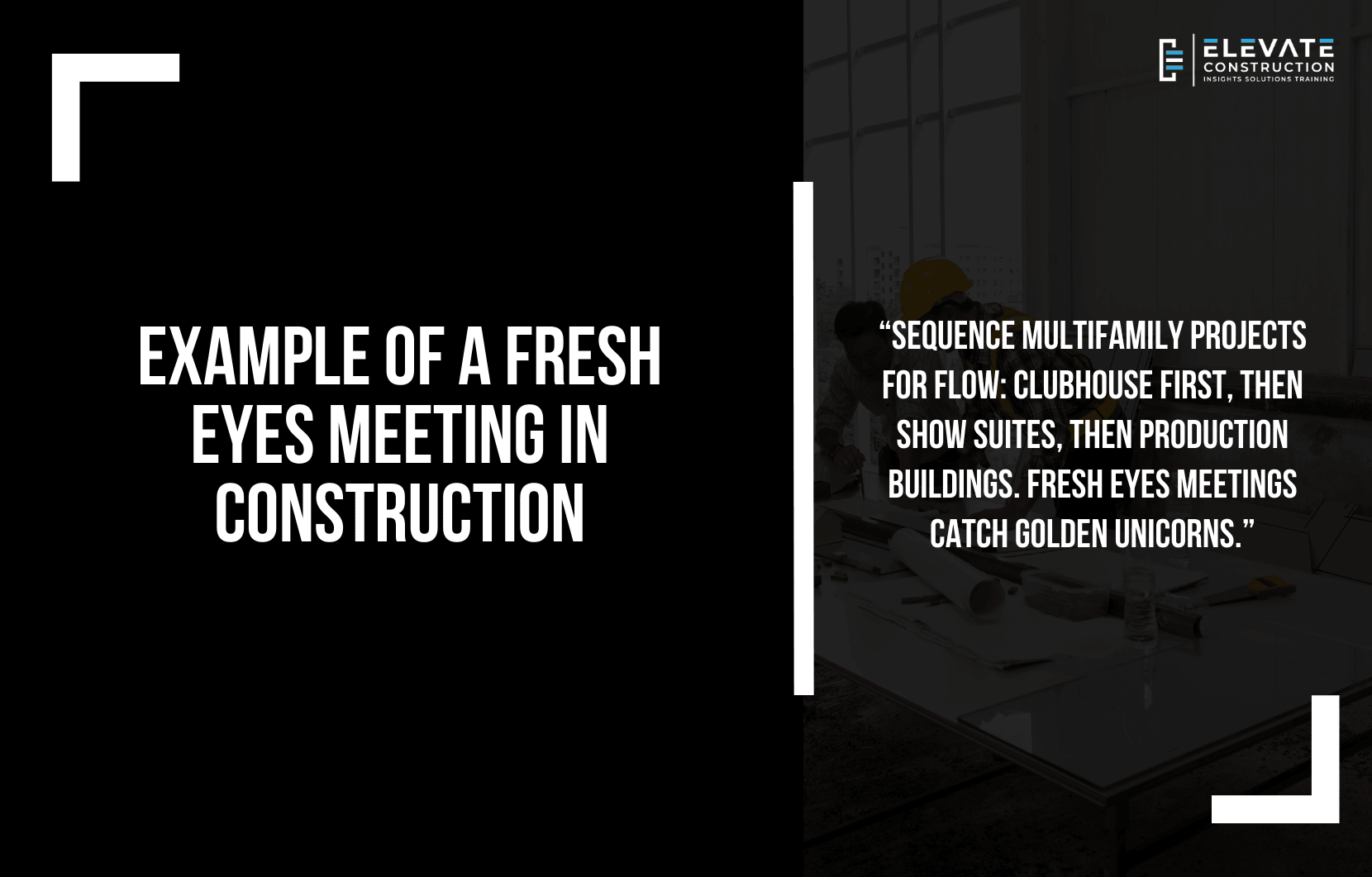 As we say at Elevate, sequence multifamily projects for flow: clubhouse first, then show suites, then production buildings. Fresh eyes meetings catch golden unicorns. Reference class forecasting removes guesswork. That’s how you finish on time without burning people out.