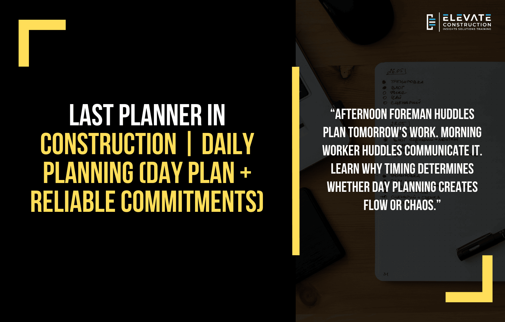 This connects to everything we teach at Elevate Construction about respecting people and creating systems that enable their success. Workers want to do good work. They can’t execute effectively when plans change at the moment work should start. They can’t maintain productivity when coordination interrupts their setup and momentum. Day planning done correctly afternoon foreman huddles creating plans, morning worker huddles communicating plans, visual documents accessible all day protects worker productivity while ensuring everyone operates from the same coordinated reality.