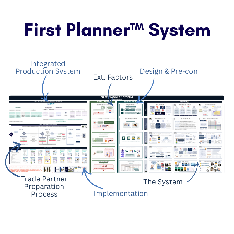 Discover the backbone of our construction process at Elevate Construction, where precision meets productivity. At the heart of our operations lies the Integrated Production Control System™, a comprehensive framework that harmonizes our planning and execution efforts. Within this system, the First Planner System® serves as our foundation, enabling collaborative planning sessions where teams strategically sequence tasks and allocate resources. Complementing this, Takt Production System® sets the pace of production, synchronizing workflows to optimize efficiency and minimize waste. Furthermore, the Last Planner System® enhances project coordination and transparency, empowering teams to anticipate and address potential challenges proactively, ensuring on-time delivery and exceeding client expectations