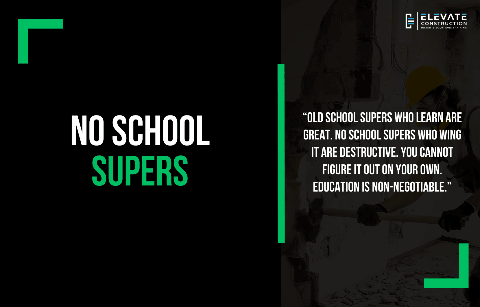 And if you know a no school super, challenge them. Don’t let them wing it. Don’t let them spread the culture of not learning. Give them a book. Invite them to a training. Show them a better way. Because no school supers are destructive. And if we don’t fix this, the industry suffers. As we say at Elevate, you cannot figure it out on your own. Education is non-negotiable. Old school supers who learn are great. No school supers who wing it are destructive. Read. Train. Learn. Improve.