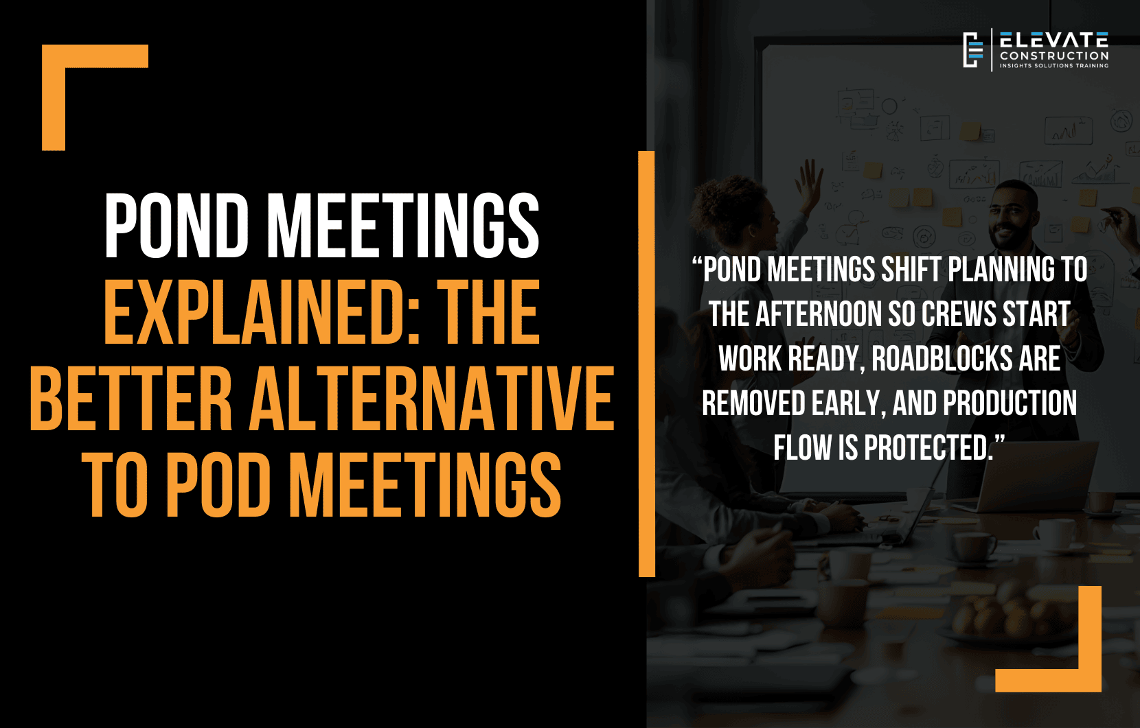 A POD meeting plans work the same morning crews are expected to build, while a POND meeting plans the next day’s work in advance. POND meetings protect production time and reduce variation.