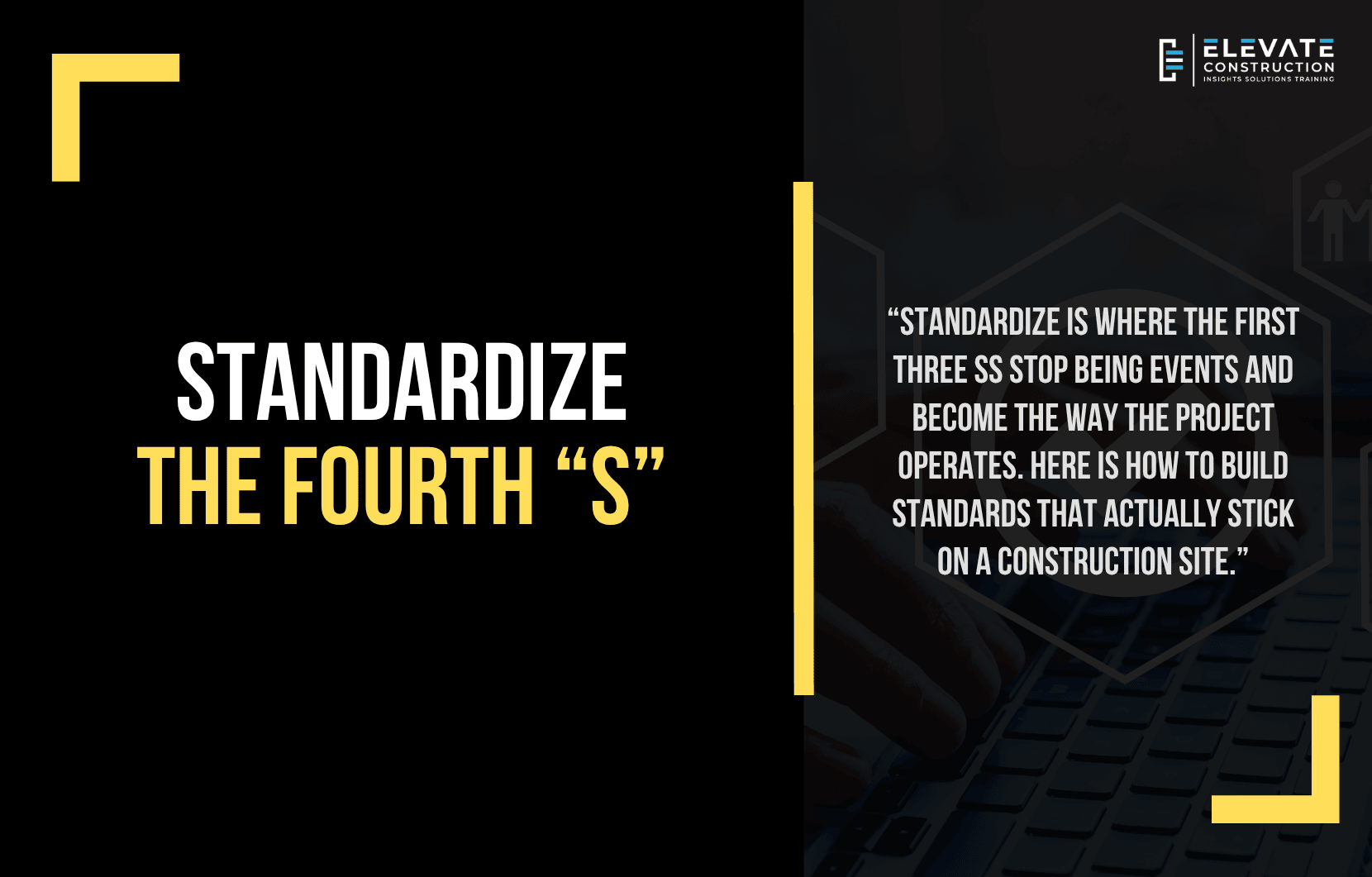 Standardize is the fourth S, and it is the one that determines whether everything built in the first three Ss becomes a permanent way of operating or a temporary condition that requires periodic recreation. It is the step that transforms individual practices into organizational agreements documented, posted, audited, and consistent across every trade partner, every new hire, and every phase of the project.