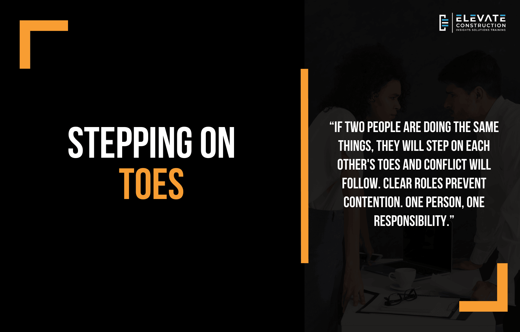 This sounds simple. But it’s powerful. Clear roles prevent conflict. One person per responsibility ensures things get done. And teams that honor boundaries build trust instead of resentment. As we say at Elevate, if two people are doing the same things, they will step on each other’s toes. Clear roles. One responsibility. No overlap. That’s how teams work.