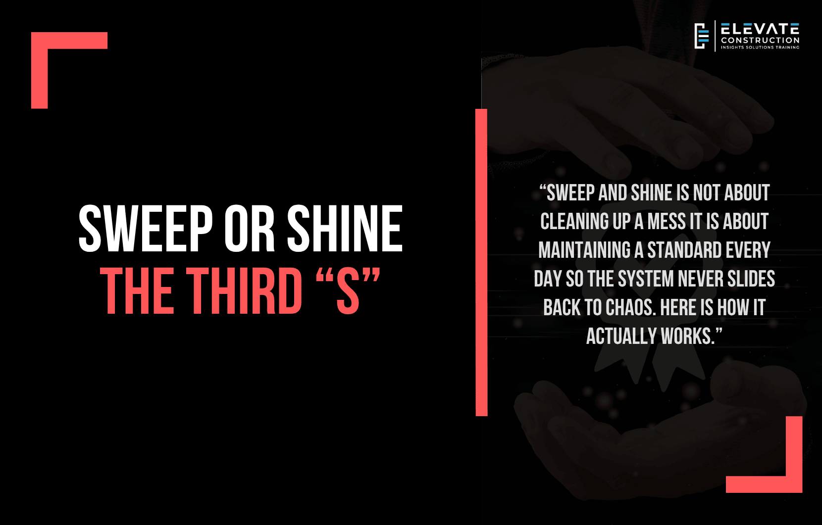 Shine is the daily discipline that makes the first two Ss permanent rather than temporary. Do it every day and the system stays. Skip it and the system degrades. It is that binary. And it is that important.