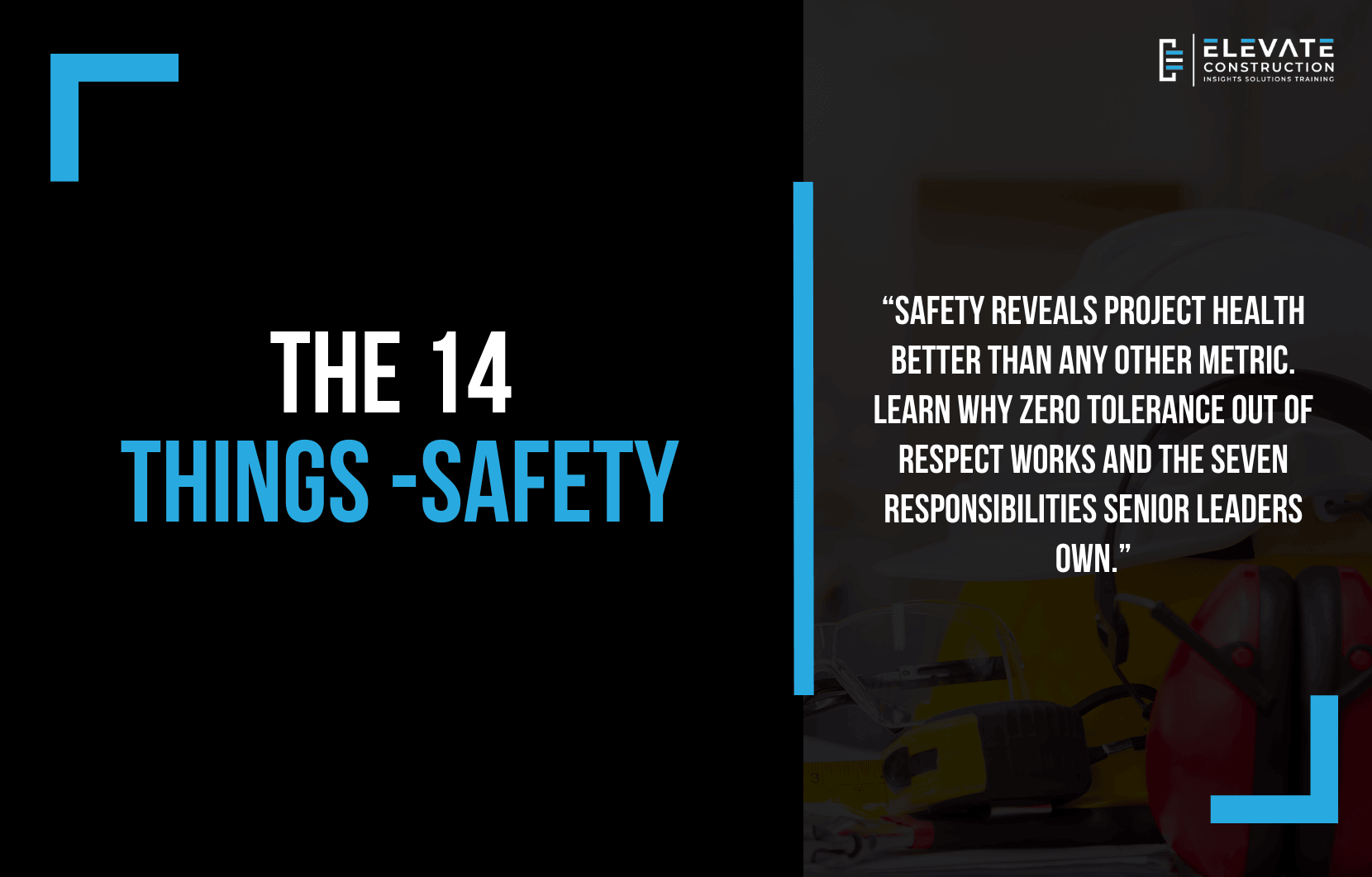 If your project needs help implementing zero-tolerance-out-of-respect safety culture, if senior leaders are supporting safety instead of owning it, if safety plans are generic instead of job-specific, if pre-task planning is administrative theater instead of visual crew-level preparation, Elevate Construction can help your teams create the seven non-negotiable responsibilities that turn safety from compliance program into culture revealing project health.