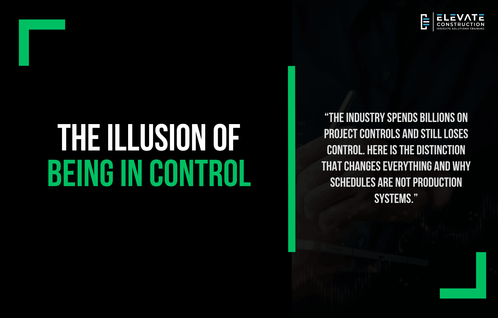 At Elevate Construction and LeanTakt, we teach this distinction because it matters to the people building the projects, not just the people managing them. When the project has real control, when the production system is designed to deliver reliable rates and the team is steering it actively, the foremen know what to expect each day. The workers arrive to zones with full kit. The superintendent is ahead of problems instead of behind them. And the families behind all of those people benefit because the project is not requiring chaos and overtime to compensate for a system that was never properly designed. If your project needs superintendent coaching, project support, or leadership development, Elevate Construction can help your field teams stabilize, schedule, and flow. Design the production system. Manage the rates. Steer toward the milestone. That is control. Everything else is just reporting.