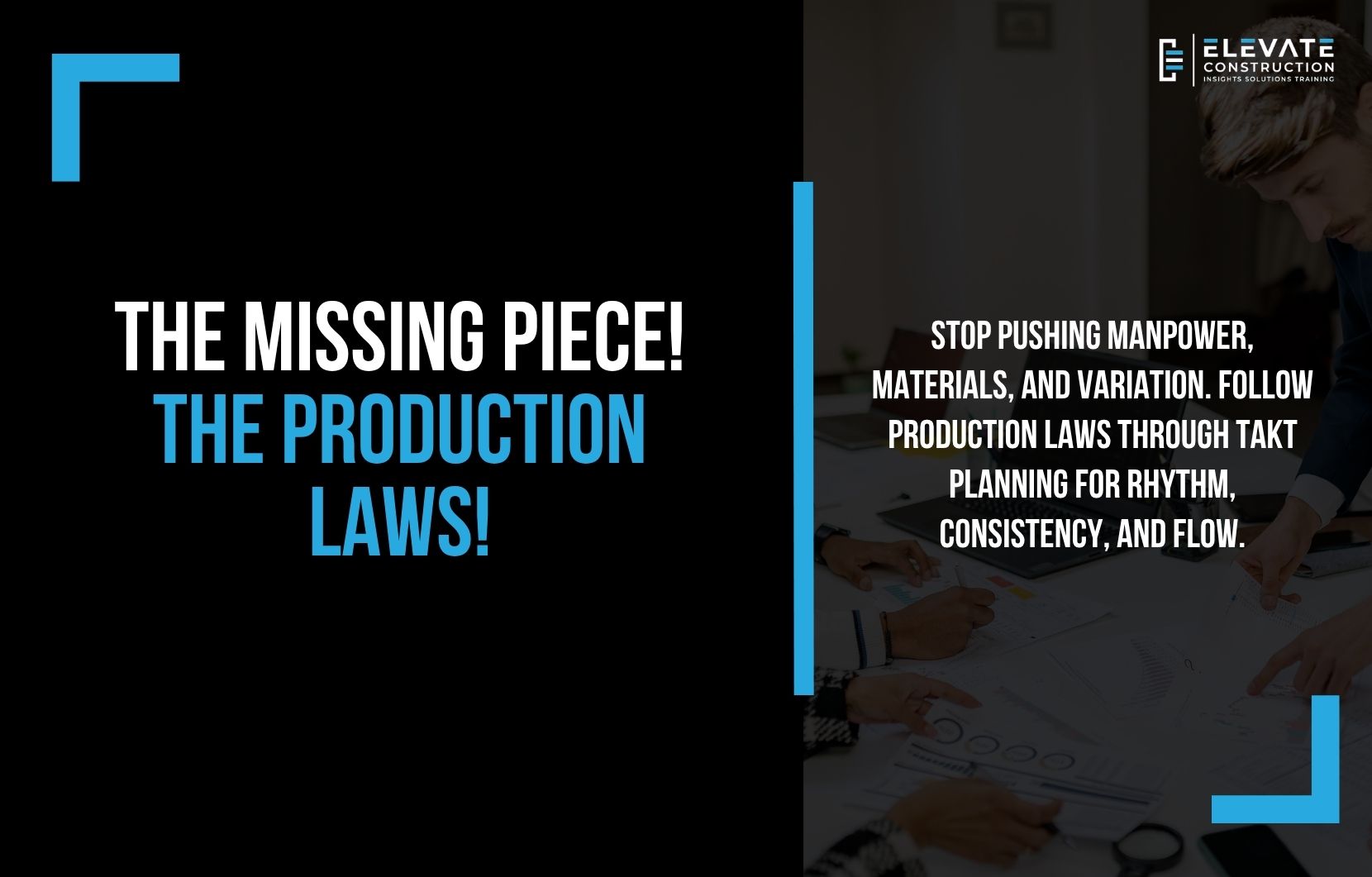 Here’s your assignment. Stop disobeying production laws. Start following them through Takt planning creating rhythm, consistency, and continuity.