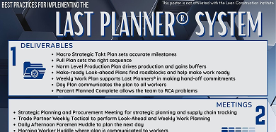 Takt planning, day planning, logistics, pre-construction, team health, communication systems, and more.
