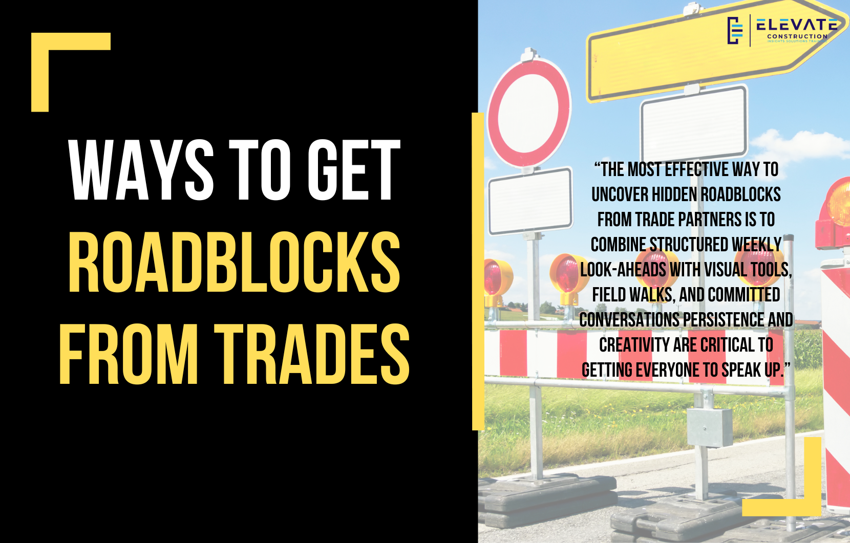 The most effective way to uncover hidden roadblocks from trade partners is to combine structured weekly look aheads with visual tools, field walks, and committed conversations persistence and creativity are critical to getting everyone to speak up.