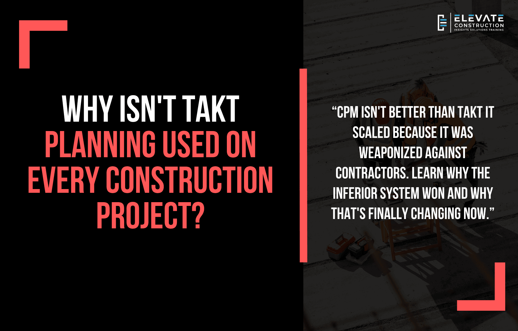 This connects to everything we teach at Elevate Construction about building systems that respect people and create predictable flow. CPM was chosen for defensive legal value. Takt is being chosen for production value. That shift from fear-based to flow-based system selection represents a fundamental change in how construction thinks about planning. If your company is ready to make that shift, if your project needs superintendent coaching, project support, or leadership development focused on flow instead of fear, Elevate Construction can help your field teams stabilize, schedule, and flow.